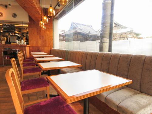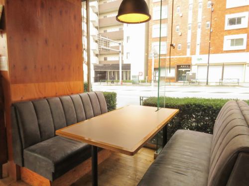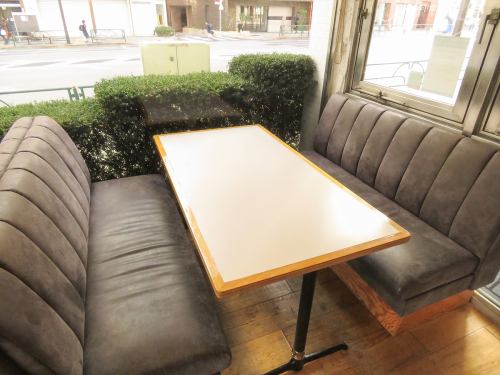 夜はお酒を楽しむこともできます!テーブルをくっつけると大人数も可能です◎4名様~宴会コースも承ります!片側のベンチソファーで広々とおくつろぎいただけます!